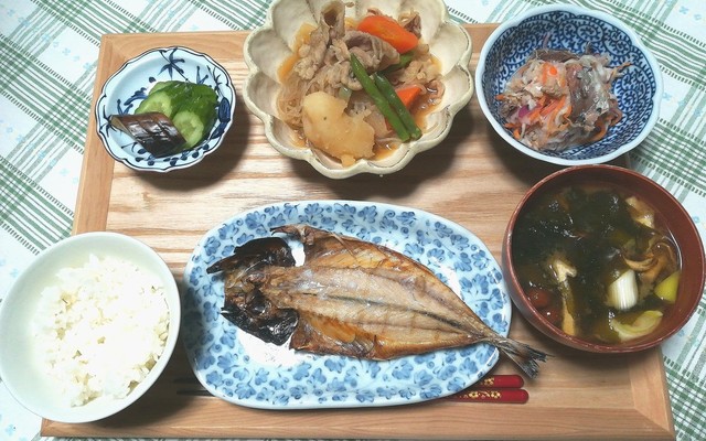 夕食 さけのあら焼き 肉じゃが 小松菜おひたし The Last Sasurai 自炊ニストの食卓